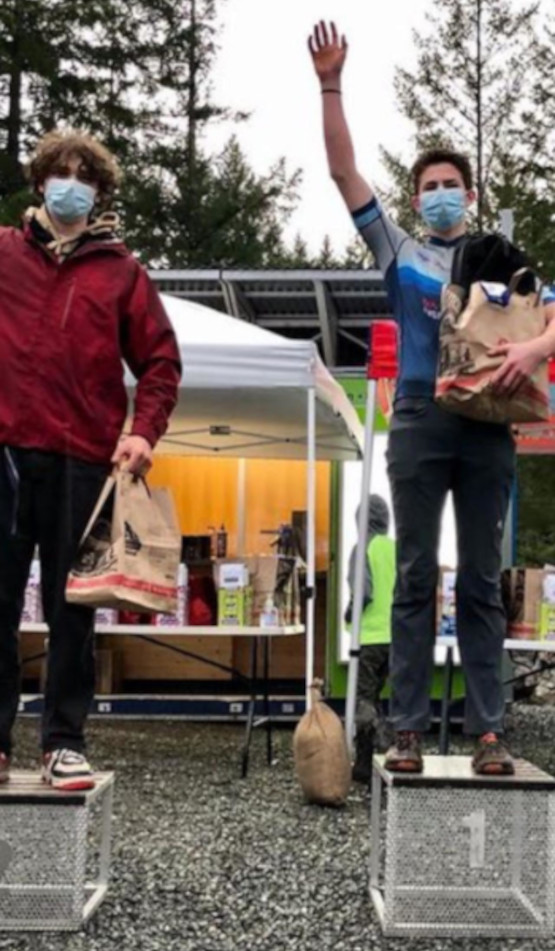 Muc-Off in Nanaimo was so windy I felt like I was going to be blown off my bike but I ended up third on the podium. The final race of the season, Hot Cross Bunnies in Nanaimo, was a crazy mud fest. It was slow going because the mud was so thick. Every pedal stroke you would barely move forward. At the end I was covered from head to toe in mud but luckily my grandma was there with a cooler full of hot water to clean us off with. I came second in launch men in this race.