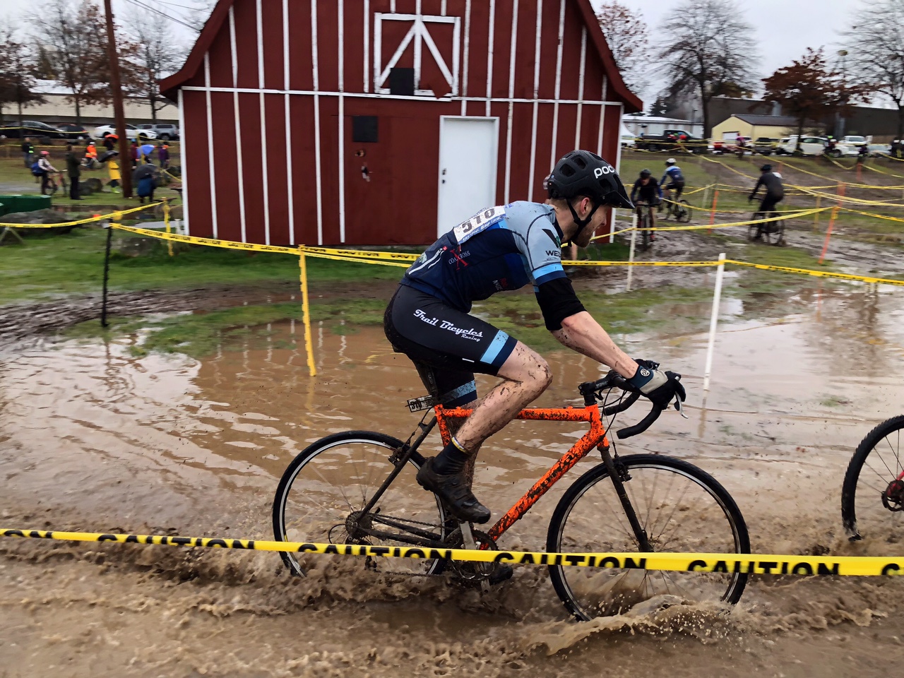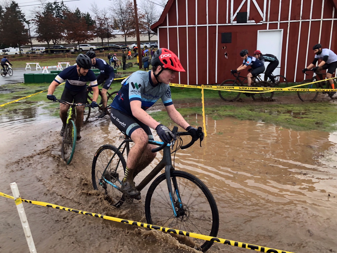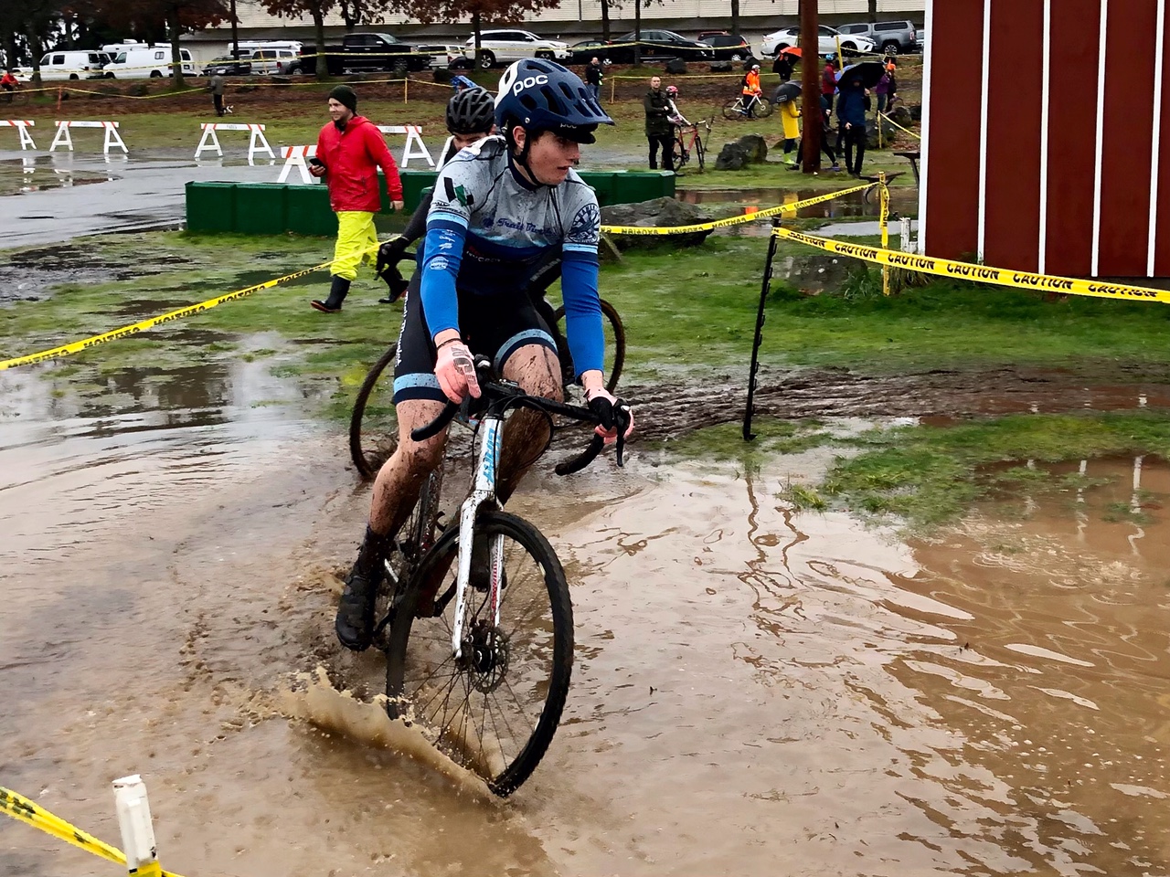 This was my 3rd time racing at Beban Park and boy, was it the most interesting. The Weather Network described it as an “excessive deluge” and that was far from an understatement. The course used to have lots of fast off-camber grass sections but most of the grass had disappeared by the time everyone had pre-ridden it, and it had become a mud bath. The rest of the course is a mix of horse paddocks with small gravel, and deep mucky wood chips.